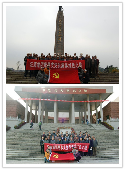 2012年11月3日、4日,为了迎接中共十八大的召开,汪海集团有限公司党总支部组织近40名党员扛着党旗赴山东枣庄革命老区参加为期两天的爱国主义教育学习活动。党员们先后参观了铁道游击队纪念园,抱犊崮国家森林公园,台儿庄大战纪念馆、台儿庄古城遗址等观光点。浓厚的历史氛围、优美的自然环境,让大家深深地感受到当地的历史与文化积淀。进一步激发党员们的爱国热情,更使每位党员开阔了视野、解放了思想,加深了党员相互之间的沟通和交流,增强了组织凝聚力,受益匪浅。