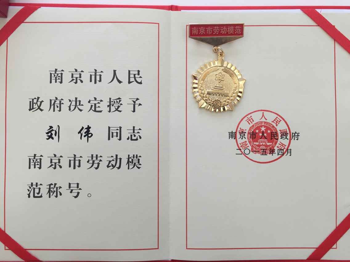 集团公司刘伟总经理荣获了本次“南京市劳动模范“称号,为集团公司争得了荣誉。自07年到集团以来,刘伟总经理在工作上一直严格要求自己,生活中照顾和关心同事,带领集团公司锐意进取,在不断取得经济效益和社会效益的同时,得到了公司内部所有职工的认可和爱戴,也得到了社会各界和同行们的一致的赞誉和肯定。