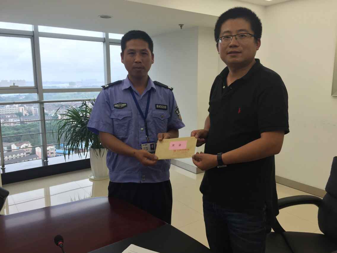 此事件中,何发祥观察细致入微、反应迅速,表现出了高度的工作责任心和良好的职业素养,为维护商业街安全秩序树立了良好的标杆作用,为公司赢得了声誉。经集团研究决定:对何发祥给予通报表扬,奖励现金2000元,并号召全体保安人员向他学习!图为:集团公司周总为保安队长何发祥颁发奖金。